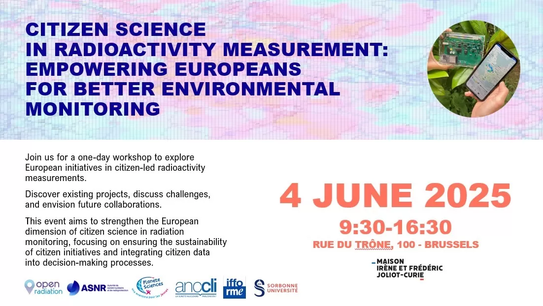 This one-day workshop will delve into European initiatives focused on citizen-led radioactivity measurements, highlighting existing projects and discussing the challenges they face. The event aims to foster collaboration and explore future opportunities to strengthen the European dimension of citizen science in radiation monitoring. Key objectives include ensuring the sustainability of citizen initiatives and integrating citizen data into decision-making processes, with a particular focus on widening participation in Eastern Europe.